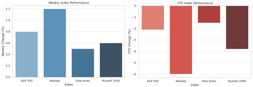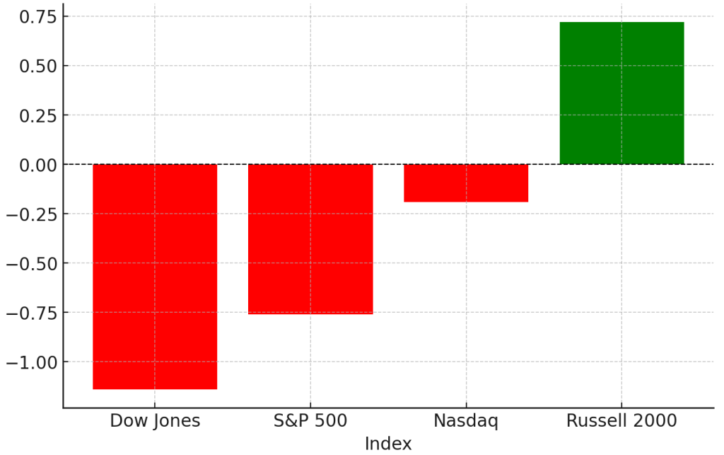 - 종가 기준: S&P 500 6,395.78 (-0.2%), 나스닥 21,172.86 (-0.7%), 다우 44,938.31 (+0.1% 미만), 러셀 2000 2,269.35 (-0.3%). AP News