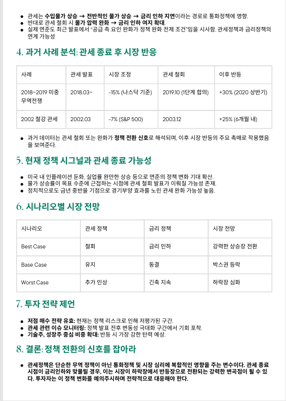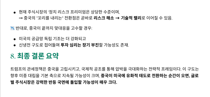 - 무역전쟁 완화 가능성 (관세 철회 및 협상 타결 시 시장 반등 기대)